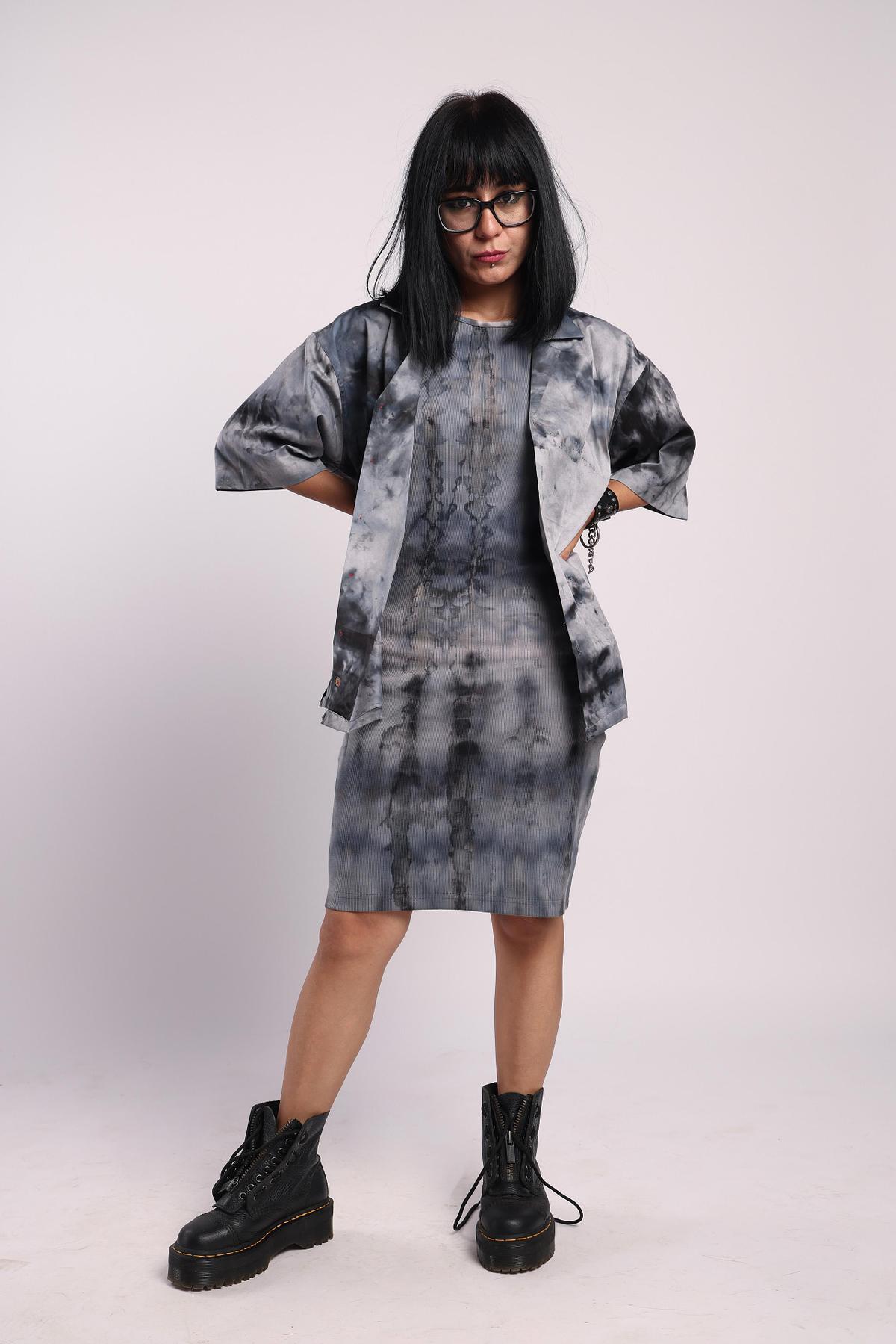 Introducing the Charcoal Night Hand-Dyed Rib Dress—a striking blend of comfort and edge. Crafted in premium cotton rib, this dress features an artisanal hand-dyed pattern inspired by moonlit nights and smoky greys.